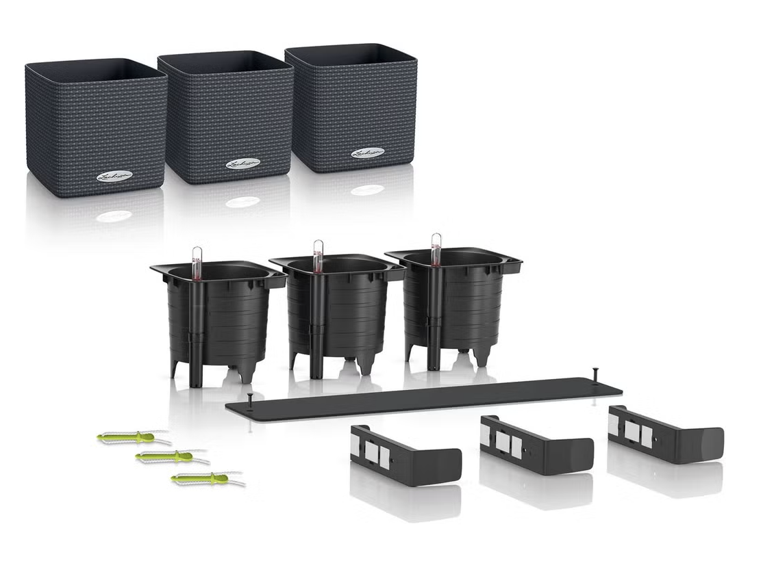 Solución compacta y elegante para autocultivo doméstico. Incluye 3 módulos con autoriego integrado, ideales para mantener hierbas frescas en cocina o balcón con mínimo mantenimiento.